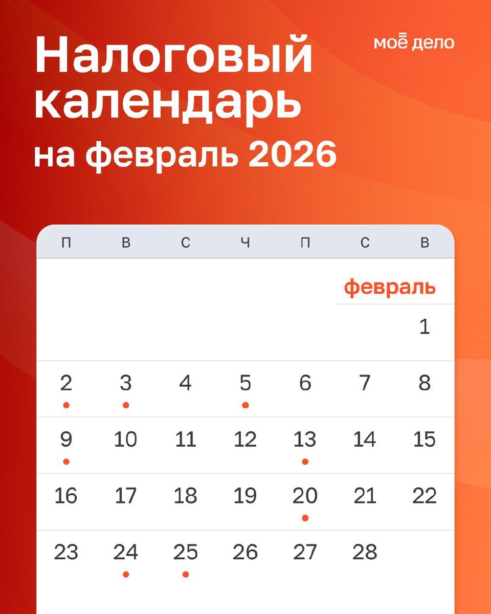 Задачи идут по плану, а налоговые сроки как всегда требуют внимания. Чтобы вы не держали в голове, что и когда сдавать, мы собрали налоговый календарь на февраль в привычном, удобном формате. Внутри, как всегда только полезное: 📅 ключевые даты – налоги, взносы, отчётность; 🔔 напоминания о каждом событии заранее; 📋 удобный формат – добавляется в телефон или компьютер за минуту. Выбирайте, как вам удобнее: — Открыть в Яндекс.Календаре 👉 https://clck.ru/3NyvSR — Скачать файл .ics 👉 https://clck.ru/3RY7Cz — Сохранить статью с пояснениями 👉 https://clck.ru/3RY7LZ Пусть февраль пройдёт спокойно: с понятными сроками и ощущением контроля над делами 🧡 Моё дело — ваш бухгалтерский партнёр на всём пути бизнеса.