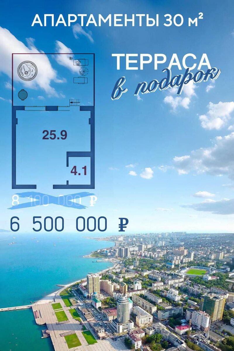 ! Апартаменты с большой террасой в подарок🎁 Отличный вариант для сдачи в аренду 💰 📍3 этаж 📍10 минут пешком до моря 📍ключи в день подписания ДКП 📍стоимость с учетом скидки 6 500 000 р🔥 Акция действительна до 28 февраля!