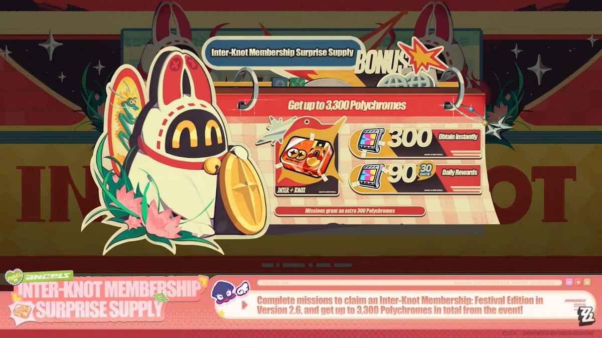 С 30 января стартует ивент, в котором за вход в игру, трату энергии и прочую рутину можно полутать по 300 Полихромов и за выполнение всех мини-заданий праздничную версию Интернот-подписки после выхода версии 2.6 #zzz_официально #zzz2_6 / Подпишись на Сенсея