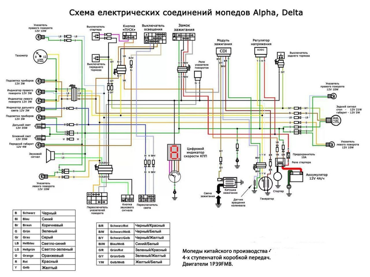 Электо-схема с двух проводным тахометром. Схема с трëхпроводным тахометром и с освещением от АКБ немного отличается
