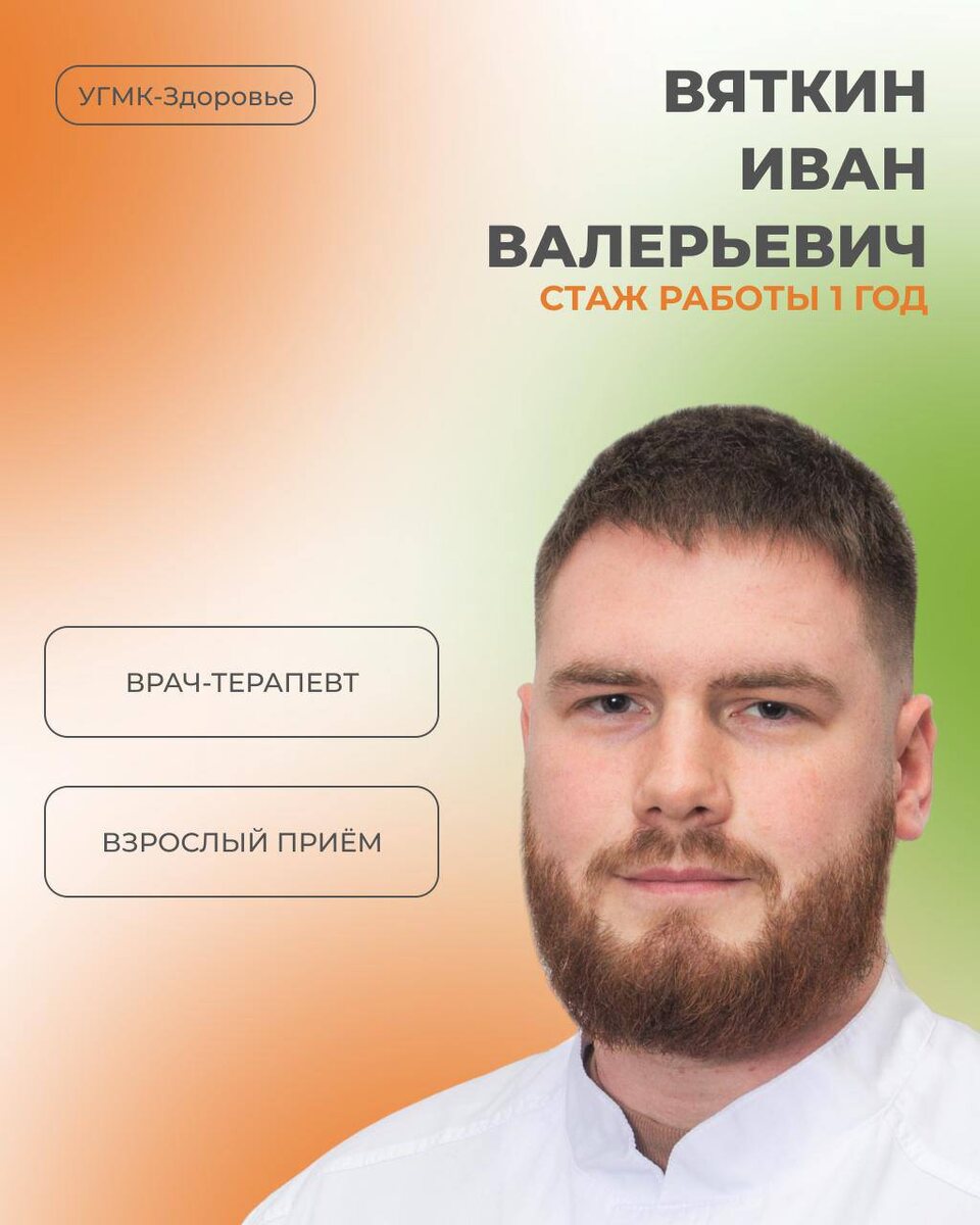 В «УГМК-Здоровье» ведёт приём Вяткин Иван Валерьевич, врач-терапевт. С какими вопросами можно обратиться? 🔴Диагностика и лечение сердечно-сосудистых заболеваний. 🔴Профилактика сердечно-сосудистых осложнений. 🔴Диагностика и лечение артериальной гипертензии. 🔴Диагностика и лечение ОРВИ, пневмоний, ХОБЛ, бронхиальной астмы. Рекомендуем взять с собой выписки с предыдущих консультаций, результаты лабораторных и инструментальных исследований (ЭКГ, УЗИ, анализы крови), а также список принимаемых лекарств. Специалист ведёт приём по адресу: Народной Воли, 18. 🔴Записаться на консультацию можно на сайте клиники или по телефону +7 343 283 08 08