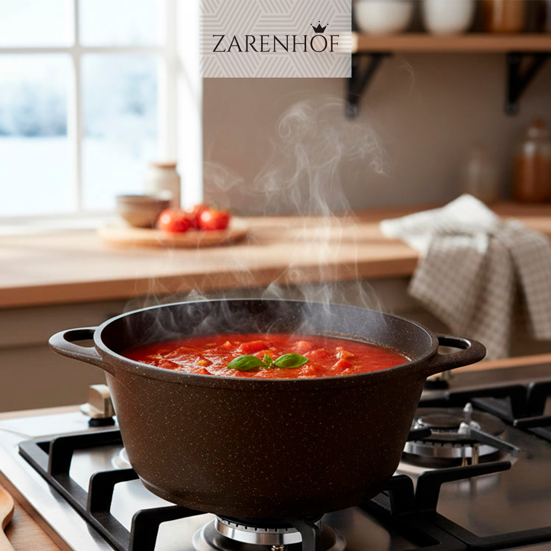 Начало нового месяца — отличный повод внедрить полезные кулинарные привычки, которые экономят самый ценный ресурс — время. Одной из таких привычек является приготовление базовых продуктов «впрок». Базовый томатный соус — универсальный фундамент для десятков блюд: от классической пасты до рагу и домашней пиццы. Его приготовление один раз в неделю избавляет от необходимости каждый вечер начинать готовку с нуля. Ключевым элементом успеха в этом деле является не только рецепт, но и выбор правильной посуды. Кастрюля Zarenhof ZA 0001 Eden объёмом 3 литра идеально подходит для этой задачи. Её толстое капсульное дно обеспечивает равномерное, мягкое томление без риска подгорания, что критически важно для соусов на основе томатов, склонных к прилипанию. После приготовления соус можно остудить и убрать на хранение прямо в этой же кастрюле (при наличии стеклянной крышки) либо разлить по порционным контейнерам. Это минимизирует количество посуды для мытья и упрощает процесс. Этот соус намеренно сде