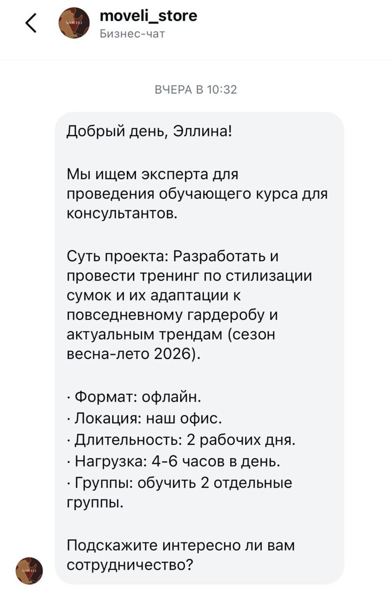 😢 Но зато мой опыт лектора уже по своим каналам передают бренды из рук в руки, поэтому предложения сыпятся сами собой, они сами меня находят! Вот тут смело могу поделиться, потому что я не смогу в нем поучаствовать, но от этого не менее лестно. Moveli довольно серьезный премиум на рынке, такое предложение очень лестно! Немного грустно, что не могу использовать возможность, зато могу присвоить себе достижение и сказать вау, вот это уровень 😍