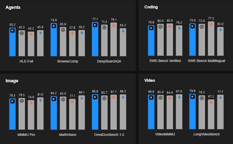 👊 Компания Moonshot AI представила модель Kimi K2.5, которая обучалась на смеси текстовых и визуальных данных умеет, что позволяет ей, например, воссоздавать интерфейс по скриншоту или видеоролику. Кроме того, она ужеже демонстрирует результаты, сопоставимые с ведущими мировыми аналогами. Так, в тестах на программирование она превзошла модели Gemini 3 Pro и GPT-5.2, а в задаче по распознаванию видео — Claude Opus 4.5. Для широкого доступа разработчик выпустил инструмент Kimi Code, который можно использовать прямо в терминале или популярных средах разработки, вводя запросы текстом или видео. Источник