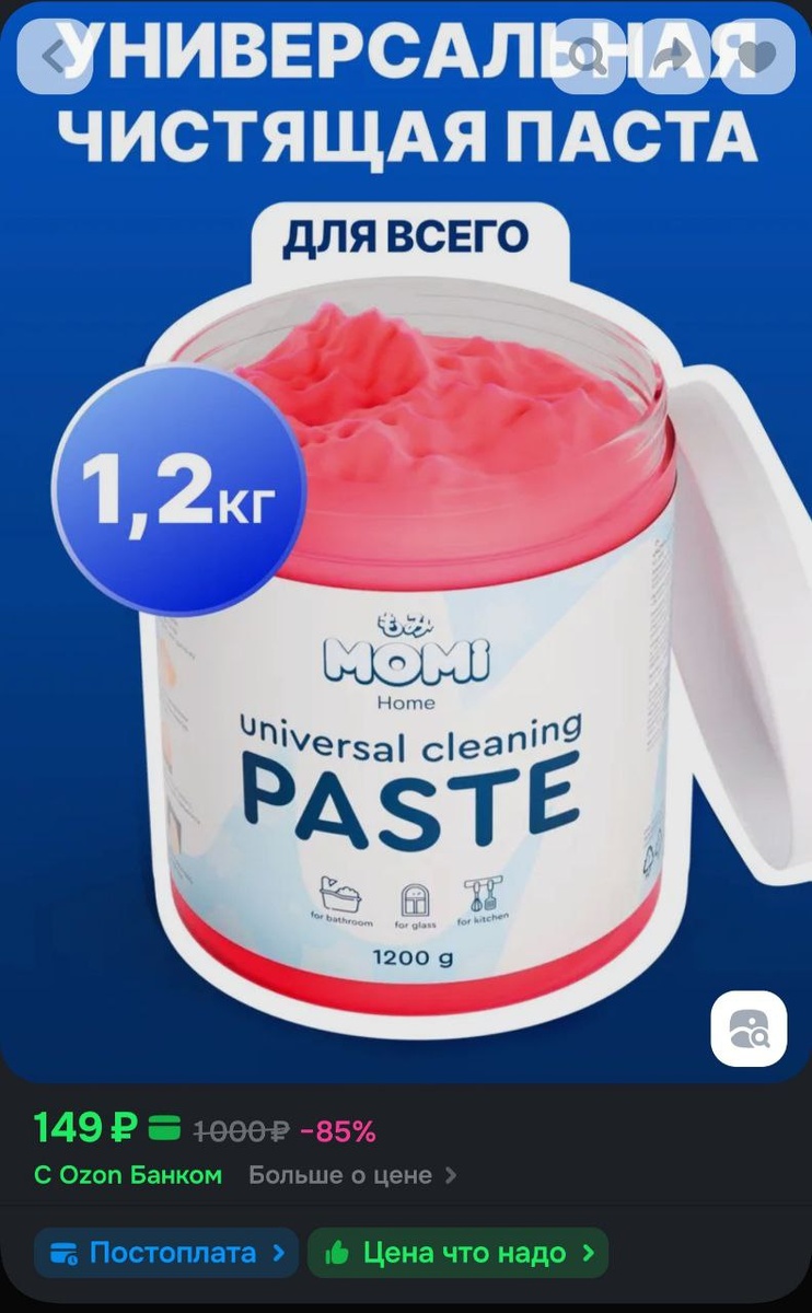 π¦MOMI Π£Π½ΠΈΠ²Π΅ΡΡΠ°Π»ΡΠ½Π°Ρ ΡΠΈΡΡΡΡΠ°Ρ ΠΏΠ°ΡΡΠ° Π΄Π»Ρ ΡΠ±ΠΎΡΠΊΠΈ 1,2 ΠΊΠ³ - 149Ρ