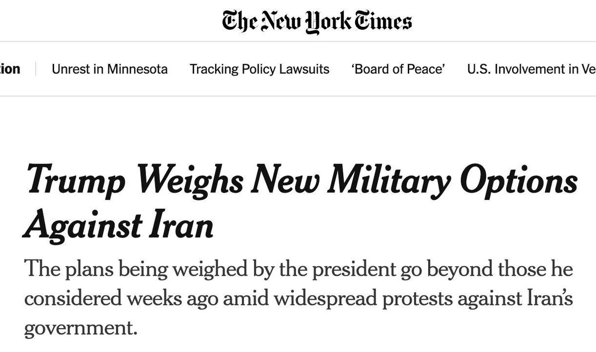 Пентагон предоставил президенту США широкий перечень вариантов действий, но он пока не принял решение и по-прежнему открыт для поиска дипломатического решения. Некоторые американские чиновники признали, что угрозы Трампа военных действий направлены на то, чтобы подтолкнуть Иран к переговорам. В последние дни президент размышлял о том, будет ли смена режима жизнеспособным вариантом. 🤗 НАСОНОВ 🔴