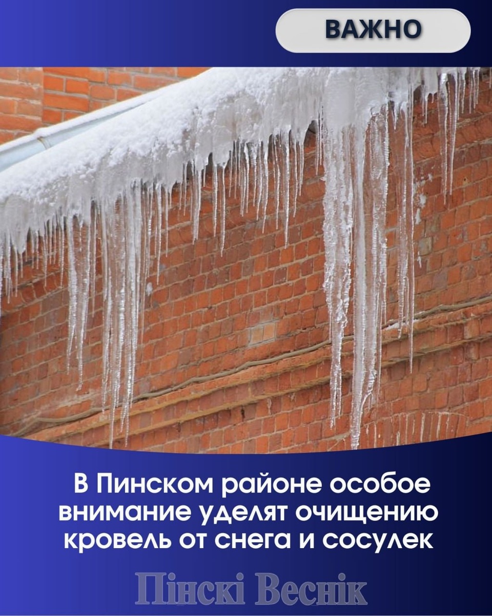 ☑️В Пинском районе действует распоряжение о ежедневном обследовании кровель на предмет ледяной заснеженности и образования сосулек