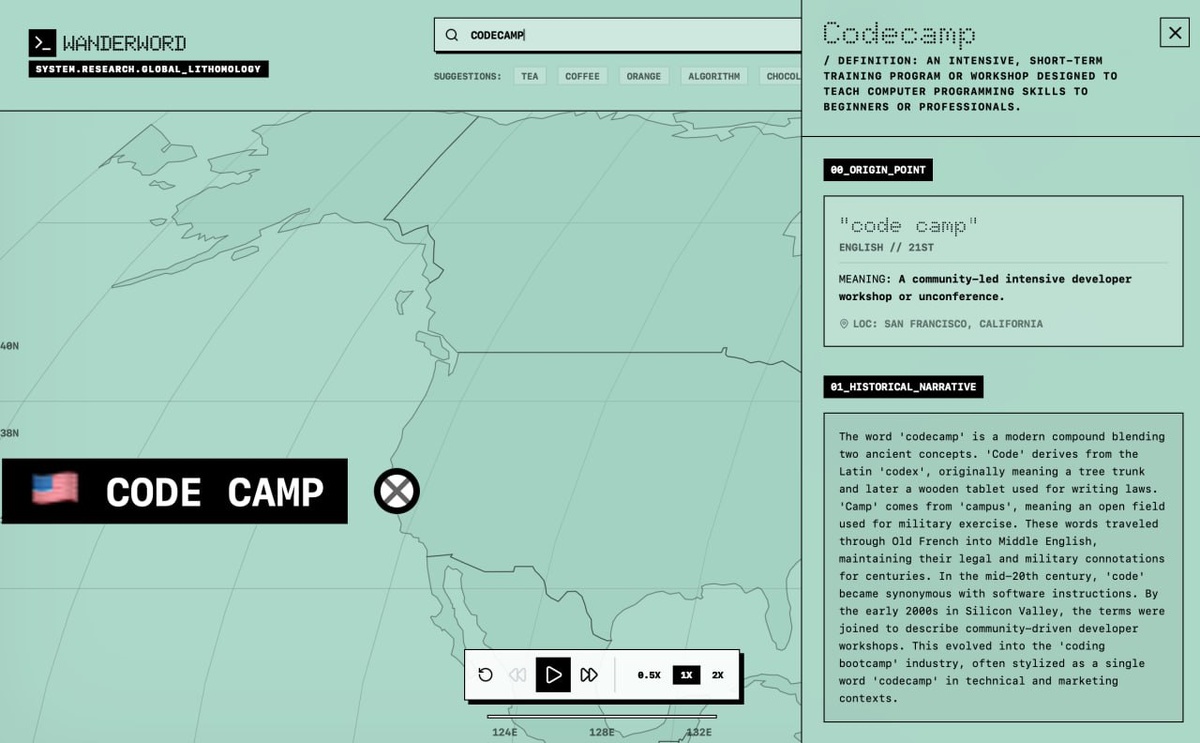 😊 Если тебе хоть раз было интересно, откуда взялось слово и как оно менялось по дороге - это прям находка. Проект визуализирует “путешествие” слов по миру: как корни кочевали вместе с торговлей, войнами, колонизацией и смешением культур. Что внутри: - Gemini помогает находить корни и родство слов (этимология без занудства) - D3.js превращает всё это в красивую анимацию на карте - ты просто вводишь слово - и видишь его историю как маршрут: страны, эпохи, переходы Это не просто справочник, а настоящая “география языка”, в которой можно зависнуть на час. https://wanderword-141284551734.us-west1.run.app/