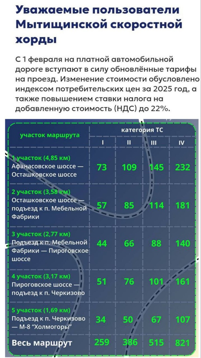 На Мытищинской хорде с 1 февраля повышение тарифов!