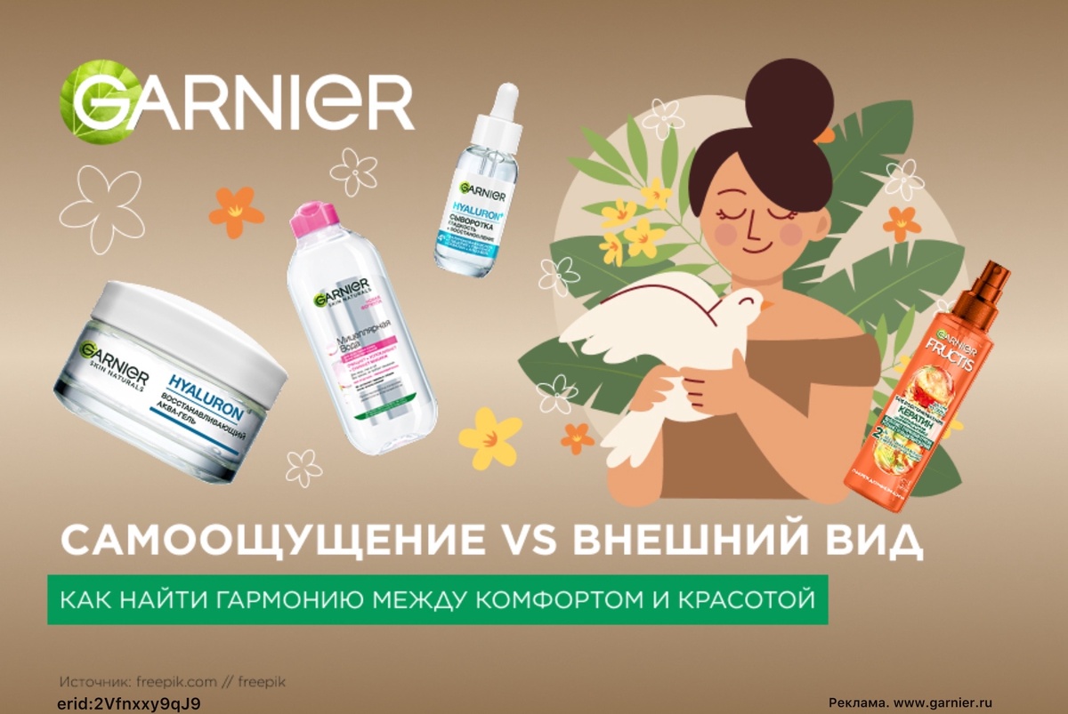Вы до сих пор думаете, что быть красивой — это трудно? Дайте нам шанс вас переубедить! Во-первых, ловите хорошую новость: вы уже красивы! Да, мы даже не глядя на фотографии можем смело об этом заявить. А во-вторых, мы собрали несколько лайфхаков по простому, но эффективному уходу за собой — они помогут поддержать естественную красоту кожи и волос. Рассказываем. 1. Красота начинается с волос Феномен, который замечают многие девушки: даже без макияжа, но с чистыми уложенными волосами они чувствуют себя гораздо увереннее. И дело тут не в сложности укладки, а в качестве самих волос. Если ваши локоны сейчас переживают не лучшие времена, выбирайте уход из серии Fructis SOS Восстановление. Базовое комбо шампунь + бальзам + термозащитный спрей поможет восстановить структуру волос и защитить их от новых повреждений. Арт. на Ozon: 1713706713, 1651544494, 1160418126. 2. Смывайте макияж быстро, но бережно Сократить время на снятие макияжа поможет мицеллярка Garnier — да, она не требует последующег