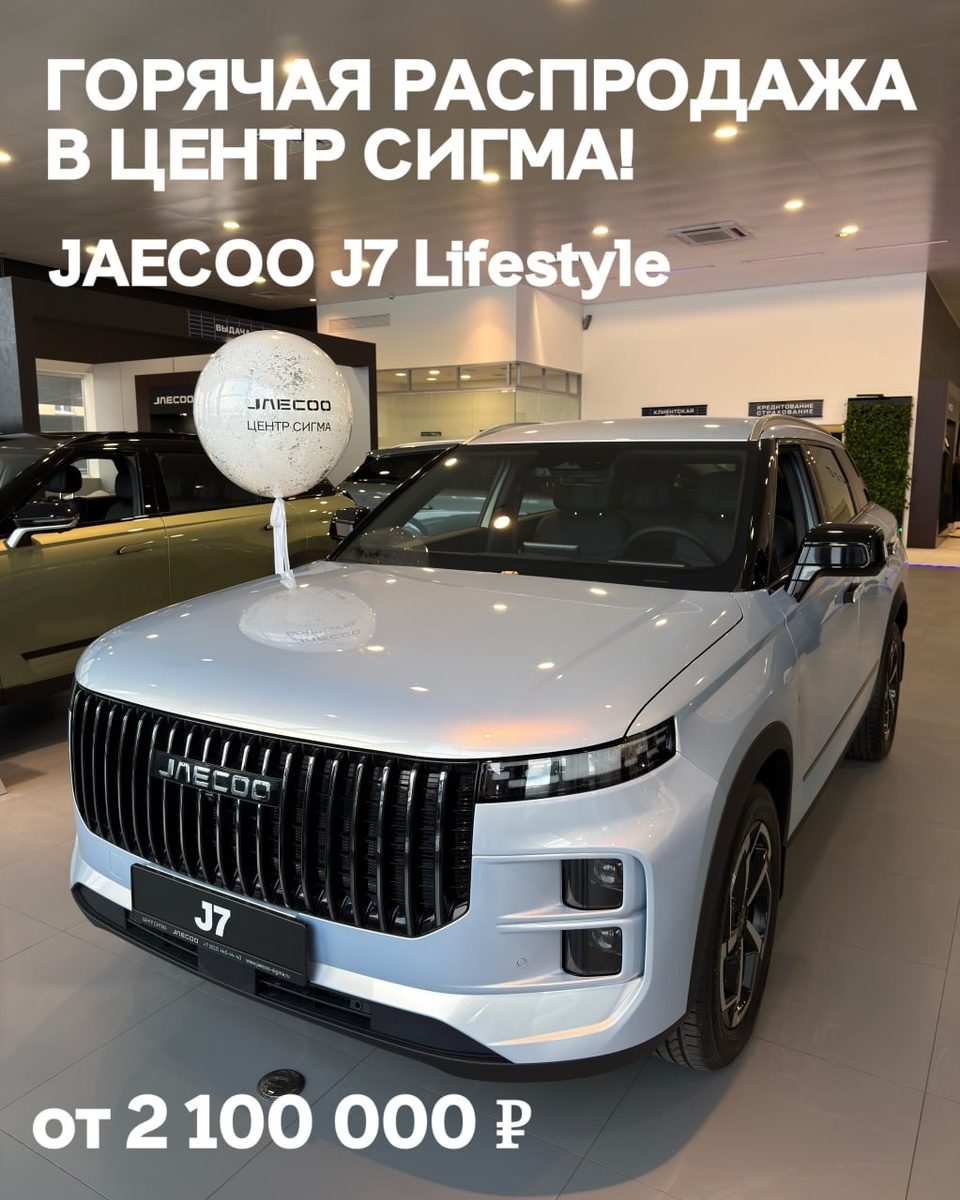 ! 🚗 ТОЛЬКО СЕЙЧАС и ТОЛЬКО В СИГМА! У нас есть всего 5 автомобилей JAECOO J7 в комплектации Lifestyle - и они ждут своих владельцев по невероятной цене! ✅ От 2 100 000 рублей - такого предложения вы больше нигде не найдёте! 💥 ✨ Успейте забрать свой J7 - осталось всего 5 штук! 📲 +7 (812) 760-32-51 *Цена действует при покупке в кредит и сдаче автомобиля в trade‑in. Подробности в отделе продаж. JAECOO ЦЕНТР СИГМА 🚩Петроградская наб. 30А