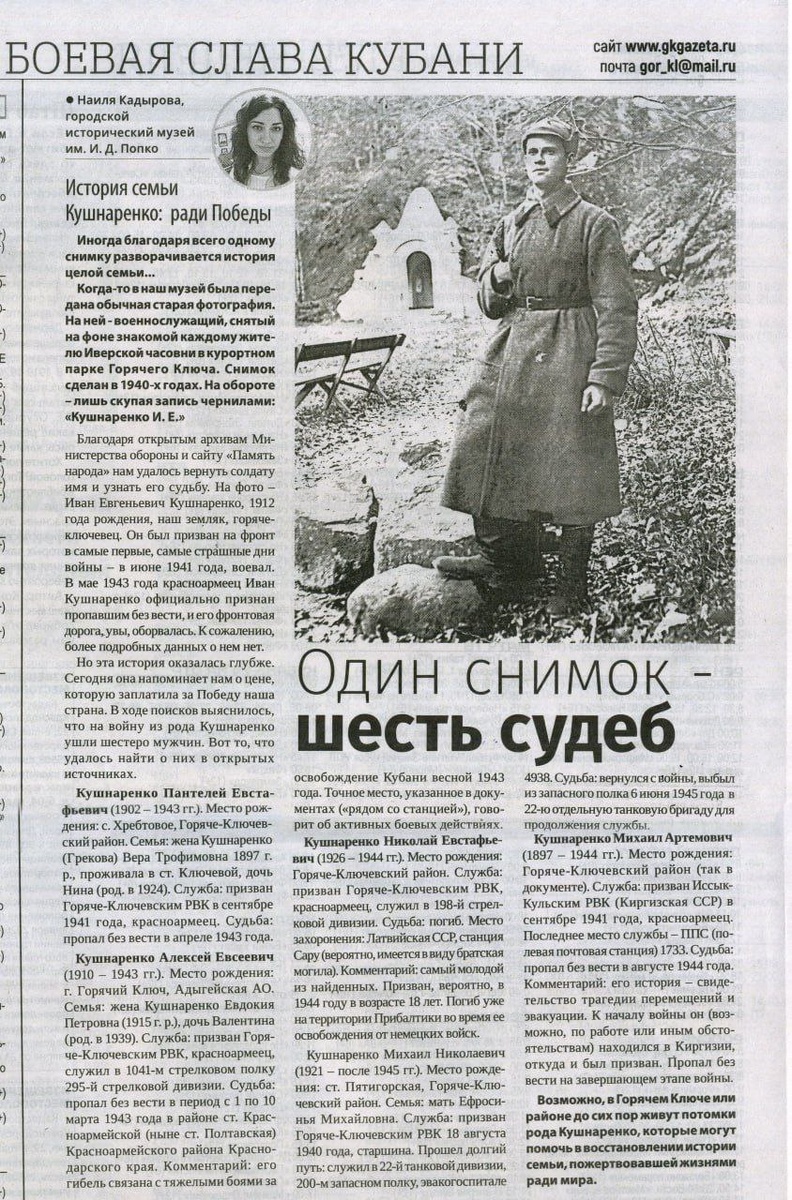 Новая публикация о семье Кушнаренко