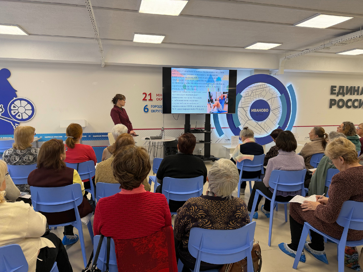 В рамках партийного проекта «Старшее поколение» состоялся обучающий семинар, посвященный профилактике социально значимых заболеваний. Мероприятие стало еще одним шагом в системной работе по поддержанию здоровья и качества жизни пожилых жителей региона. С приветственным словом выступил Александр Кузьмичев, председатель Ивановской городской Думы, региональный координатор партийного проекта «Старшее поколение». «Жизненный опыт и знания людей серебряного возраста – это фундамент, на котором строится наше общество. Они заслуживают глубочайшего уважения, искреннего внимания и самого бережного отношения», — подчеркнул он. Олеся Быкова, заведующая Центром здоровья областного кардиологического диспансера, акцентировала внимание на важности ежедневной умеренной физической активности. Она поделилась простыми, но эффективными способами поддержания физической формы в любом возрасте, которые помогают существенно снизить риск сердечных приступов и инсультов. Преподаватель Ивановского медицинского кол