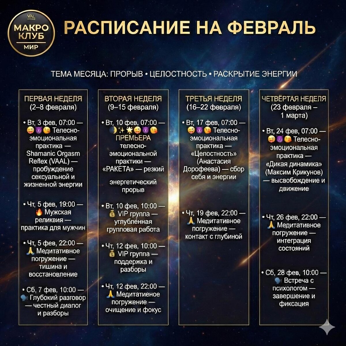 Готов календарь клуба телесных практик на февраль