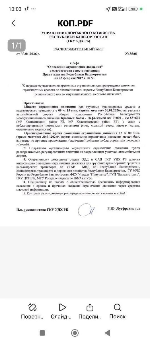Ограничение ввели сегодня, 30 января, с 09:15 утра из-за сложных погодных условий. Об этом сообщают в дорожных службах. 👉 Подписаться на канал