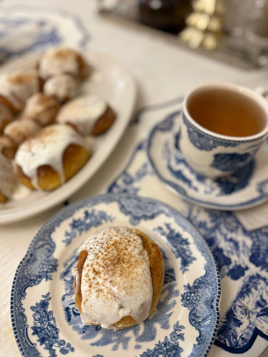Разогреть духовку до 180г, выпекать синнабоны минут 30. Достать из духовки, выложить синнабоны на блюдо. Для обливки смешать сметану с сахарной пудрой, сверху смазать синнабоны. Тёплые синнабоны особенно хороши.