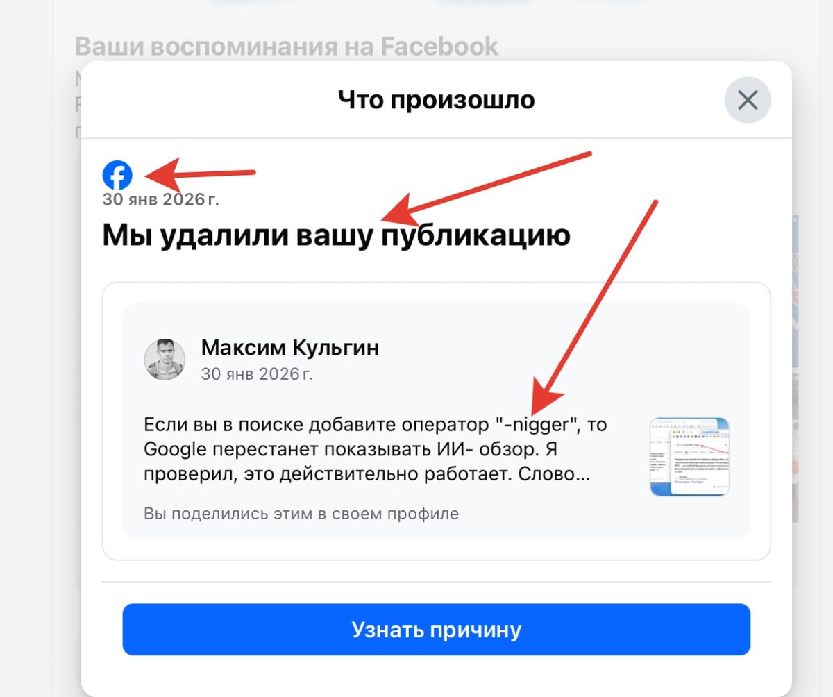 Это был просто оператор в поиском запросе. Бездушные алгоритмы беспокоятся за душевное состояние афроамериканцев. :) Хорошо, что аккаунт не забанили.