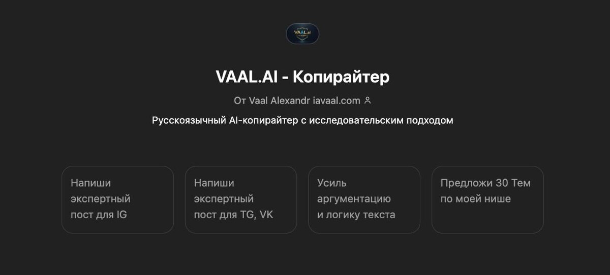 актуальные для его ЦА, отдельно пишет для ВК, ТГ https://iavaal.com/ai_temka Мы стартуем в понедельник, счастливчики ПИОНЕРЫ - ПОЛУЧАТ - 5 МАШИН ДЛЯ КОНТЕНТА, БИЗНЕСА и МОНЕТИЗАЦИИ