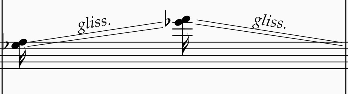 : Если вам нужно поставить двойную линию глиссандо, то на каждой из них будет слово "gliss", которое будет перекрывать другую линию и другое слово. Чтобы это исправить, используйте инспектор (ctrl shift I), в нём выберите в разделе "линии" "slide text - выключено"