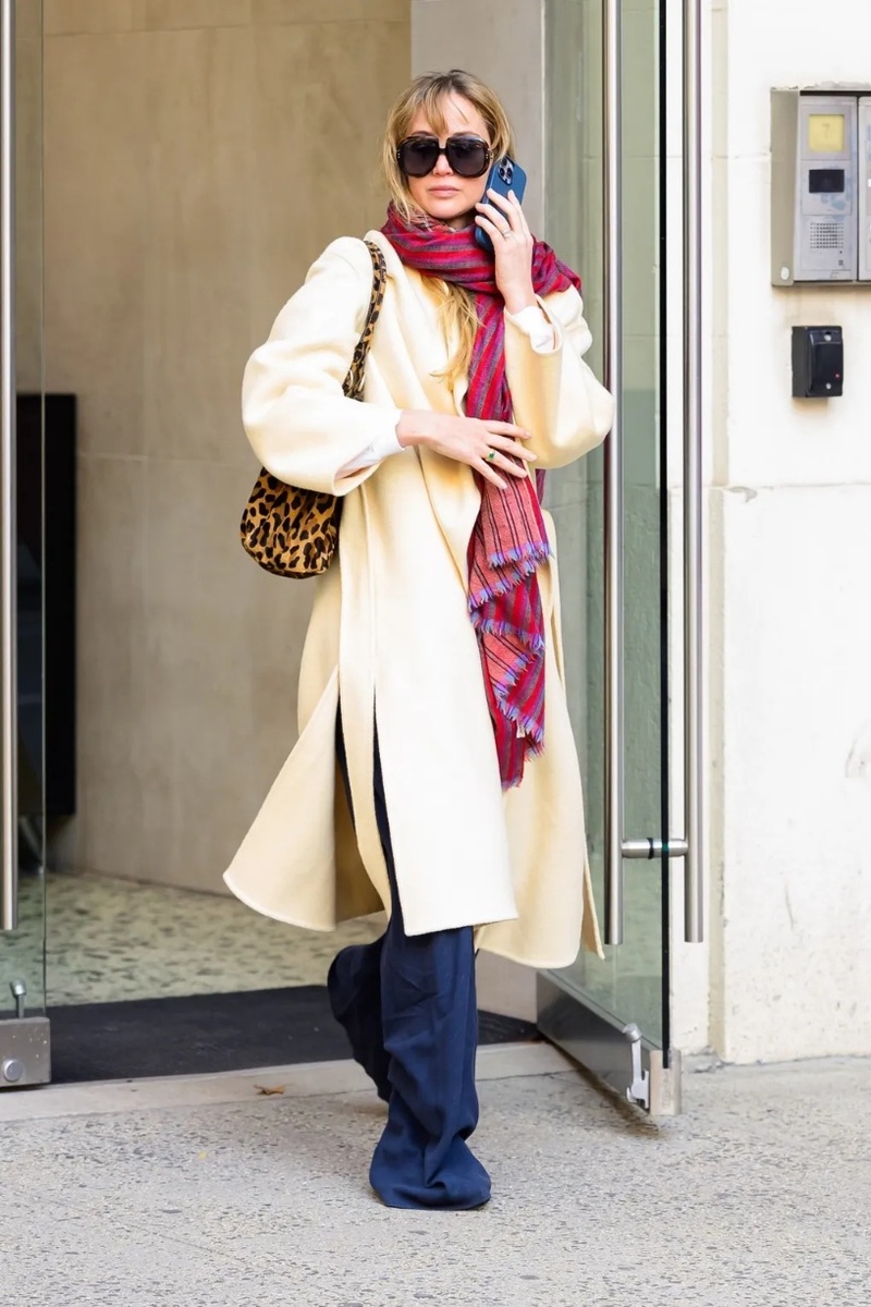 Один из самых любимых модных приемов Лоуренс - акцентный шарф. Причем он может быть как заметно яркого цвета, например, красного, так и любого нейтрального оттенка, который отличается от пальто. Для тех, кто предпочитает менее сочные цветовые сочетания, я рекомендую углубиться в классическую палитру и присмотреться к шарфам благородных оттенков - например, бордовому, коричневому, темно-синему и графитовому. Другой вариант - использовать прием pop of red, который так сильно любит Дженнифер , и интегрировать ярко -красный аксессуар в базовый образ. Ещё один стайл -трик от Лоуренс - заметным головной убор. И речь сейчас идёт не о наскучившей шапке-бини или банальном берете. Актриса часто делает выбор в пользу необычной шляпы -таблетки, преппи-кепки или шапки -колокольчик, которые преобразят комплект в одно мгновение и избавят вас от необходимости дополнительной стилизации.