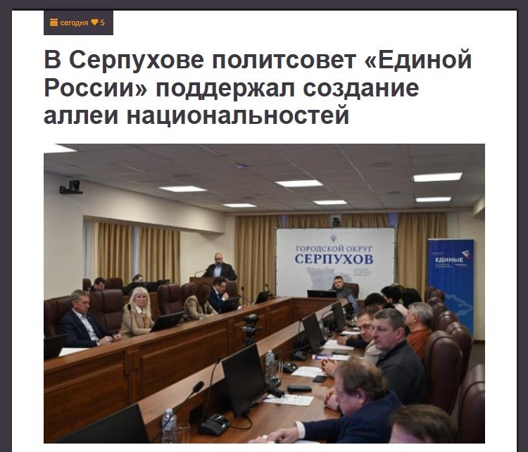 Местные чиновники озаботились национальной политикой. И позвали на встречу представителей различных диаспор. В итоге решили построить в городе Аллею национальностей. Напомню, что население Серпухова на 92,92% составляют русские. Это я к тому, о чем говорил раньше. Либо крадут деньги, либо наконец-то берутся за нацполитику, но так, что возникает мысль: лучше бы просто крали. "Ярослав Белоусов" Сальное Дифлопэ