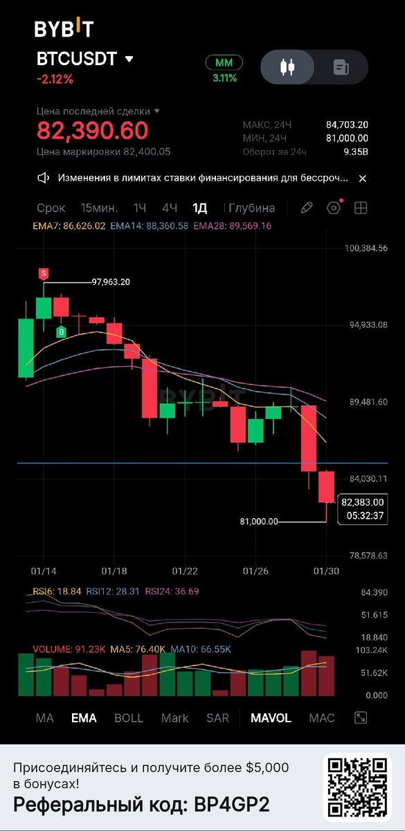 Жаль что тогда выбило, хорошо так биток просел, в целом как я и ожидал и предполагал. Тогда, напомню, заходили по 97400, или около того. Сейчас он падал до 81000, то есть на 17400. Ну, увы и ах :) тех кого тогда не выбило - поздравляю. Те кто в лонгах - сочувствую :) Лично я сейчас закупаюсь на споте понемногу. :) ⭐ Покупаем дешево Stars без KYC: ➡ — в боте @StarShip ➡ — на сайте split.tg 📈 Лучшие биржи с бонусами: 📈 Bybit | 📈 Bitget | 📈 OKX 📈 Bingx | 🟢 Kucoin ➡ Trader's Forge ➡ Trader's Forge ➡ Trader's Forge