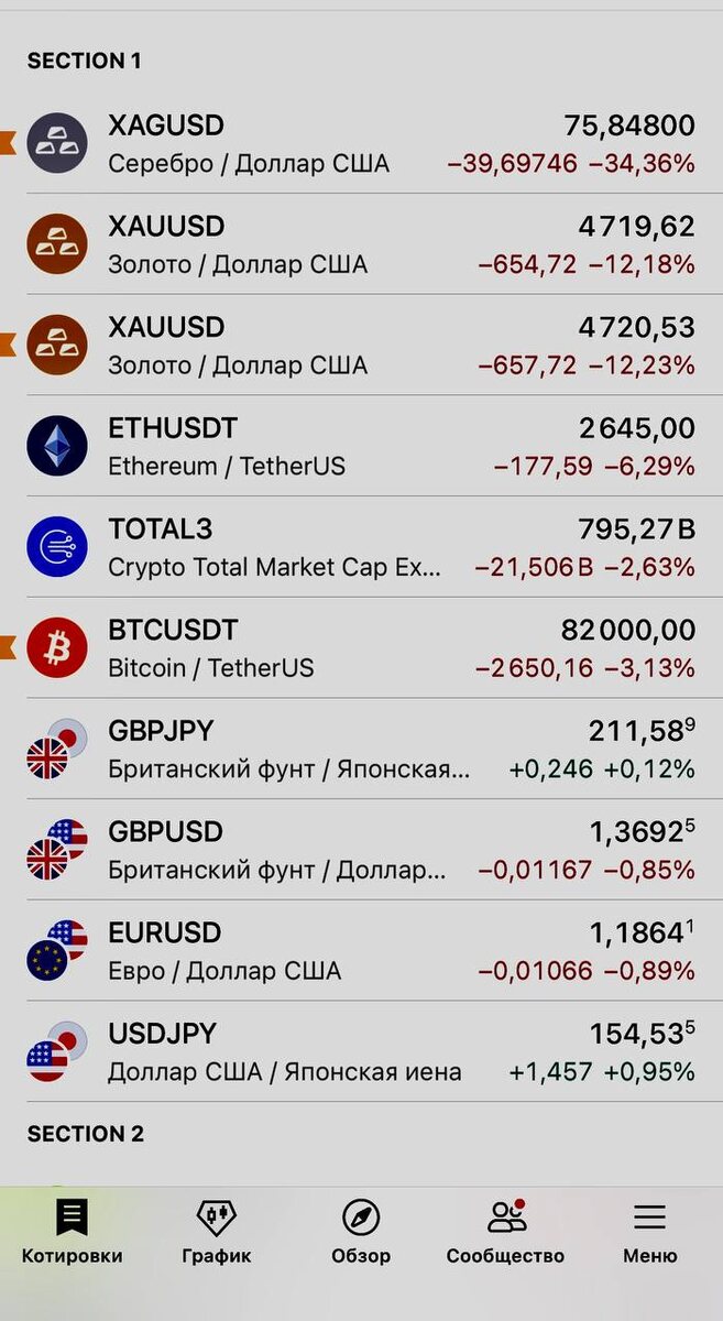 Инструмент, который десятилетиями считается «тихой гаванью», «защитным активом», флагманом среди драгметаллов — положили на лопатки за одну сессию. И здесь важно не удивляться, а делать выводы. Стабильность — это не свойство актива. Это однозначно свойство ожиданий людей. Когда рынок требует ликвидность — продают всё, без исключений: золото, серебро, биткоин, акции, фонды. В этот момент как мы наблюдаем уже в какой раз не существует «святых» инструментов. Точно так же в 2020-м «безрисковые» активы падали вместе с рынком. Точно так же в кризисы ломается всё, что кажется устойчивым. Отсюда главный вывод, который многие не хотят принимать: На финансовых рынках не существует стабильности. Существует только управление риском. Кто ищет «надёжный актив» — остаётся без защиты. Кто понимает механику рынка — остаётся в игре. Рынок не обязан быть логичным. Он обязан быть ликвидным. И сегодня он это в очередной раз доказал