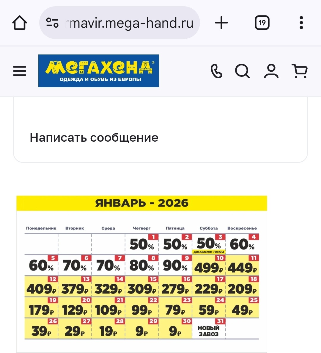 Примерно в середине января Мегахенд запустил акцию с фиксированными ценами от 499 до 9 рублей.