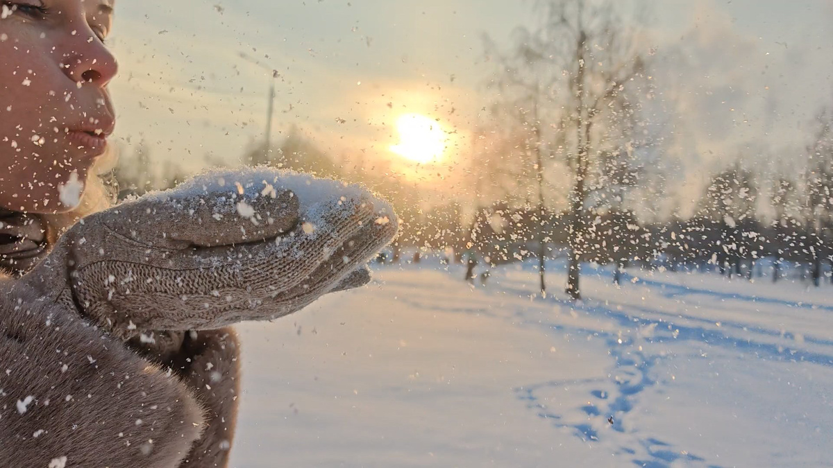 В том году, глубокой осенью, произошло удивительное. После того, как я выложила в группе ВК про Японский сад свое осеннее видео, мне, буквально, на следующий день написала Юля с просьбой - снять что-то такое же волшебное для нее, аккуратно вписав ее в природу. Так как я свободный художник, я по-началу переживала немного - согласится ли мой внутренний волшебник на такое? Придет ли вдохновение и получится ли вообще что-нибудь? Но когда мы встретились, чтобы познакомиться, случился очередной взрыв сверхновой, ибо это какая-то история из прошлого, пошло разрешение энергий, и я поняла, что переживать мне особо не за чем. К тому времени уже отполыхала золотая осень, и мы решили отложить нашу коллаборацию до зимы, когда будет много пушистого снега, мороз и солнце. И вот такой день настал, звезды сошлись, и мы отправились в Коломенское на закате снимать волшебство в -16 :) Это был мой первый опыт съемки на заказ. Основные моменты я продумала: что надо дуть снег в камеру, и два пальчика, типа ч