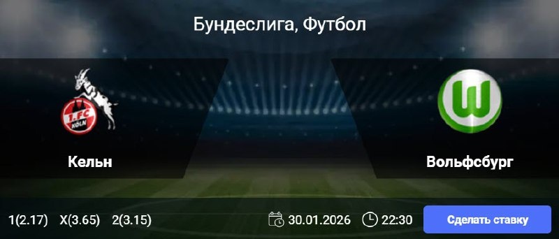 Статистика Кельна: В 9 из 11 последних матчей «Кёльна» в Бундеслиге обе команды забивали. На домашней арене команда не смогла одержать победу в 6 из 8 предыдущих игр чемпионата (2 ничьи, 4 поражения). В 5 из 7 последних домашних встреч в рамках турнира «Кёльн» пропускал не более одного гола. Статистика Вольфсбурга: «Вольфсбург» не побеждал в 6 из 8 последних выездных матчей чемпионата (1 ничья, 5 поражений). Команда забивает в гостях на протяжении семи встреч Бундеслиги подряд. В 6 из 7 последних игр «Вольфсбурга» в турнире было забито как минимум три мяча. 🎯 Обе забьют и ТБ (2.5) 🎲 кф (1.87) 👉 СДЕЛАТЬ СТАВКУ 🎁 ФРИБЕТ WINLINE - 3000₽ (промокод: BETWIN) 👉 СМОТРЕТЬ ПРОГНОЗ