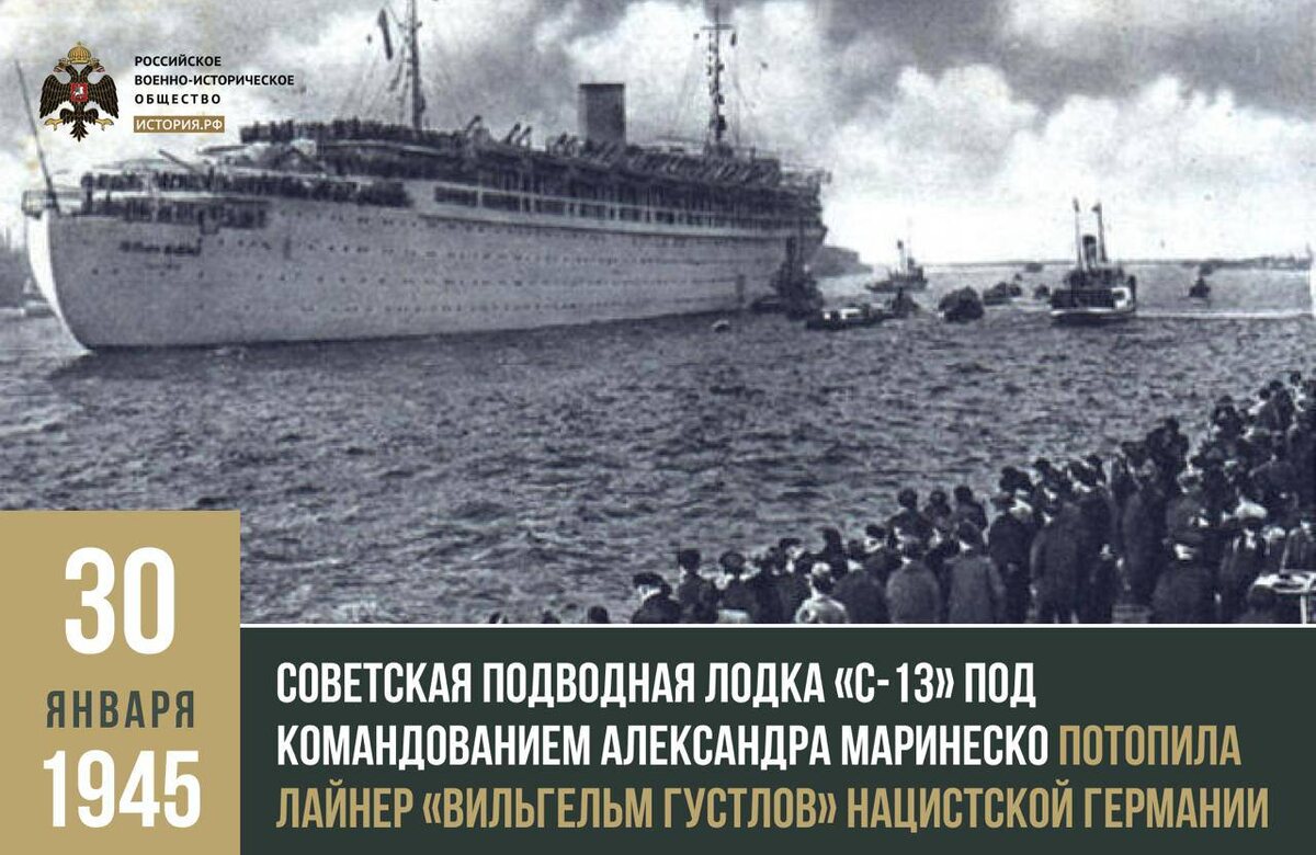π 30 ΡΠ½Π²Π°ΡΡ 1945 Π³ΠΎΠ΄Π° ΡΠΎΠ²Π΅ΡΡΠΊΠ°Ρ ΠΏΠΎΠ΄Π²ΠΎΠ΄Π½Π°Ρ Π»ΠΎΠ΄ΠΊΠ° Β«Π‘-13Β» ΠΏΠΎΠ΄ ΠΊΠΎΠΌΠ°Π½Π΄ΠΎΠ²Π°Π½ΠΈΠ΅ΠΌ ΠΠ»Π΅ΠΊΡΠ°Π½Π΄ΡΠ° ΠΠ°ΡΠΈΠ½Π΅ΡΠΊΠΎ ΠΏΠΎΡΠΎΠΏΠΈΠ»Π° Π»Π°ΠΉΠ½Π΅Ρ Β«ΠΠΈΠ»ΡΠ³Π΅Π»ΡΠΌ ΠΡΡΡΠ»ΠΎΠ²