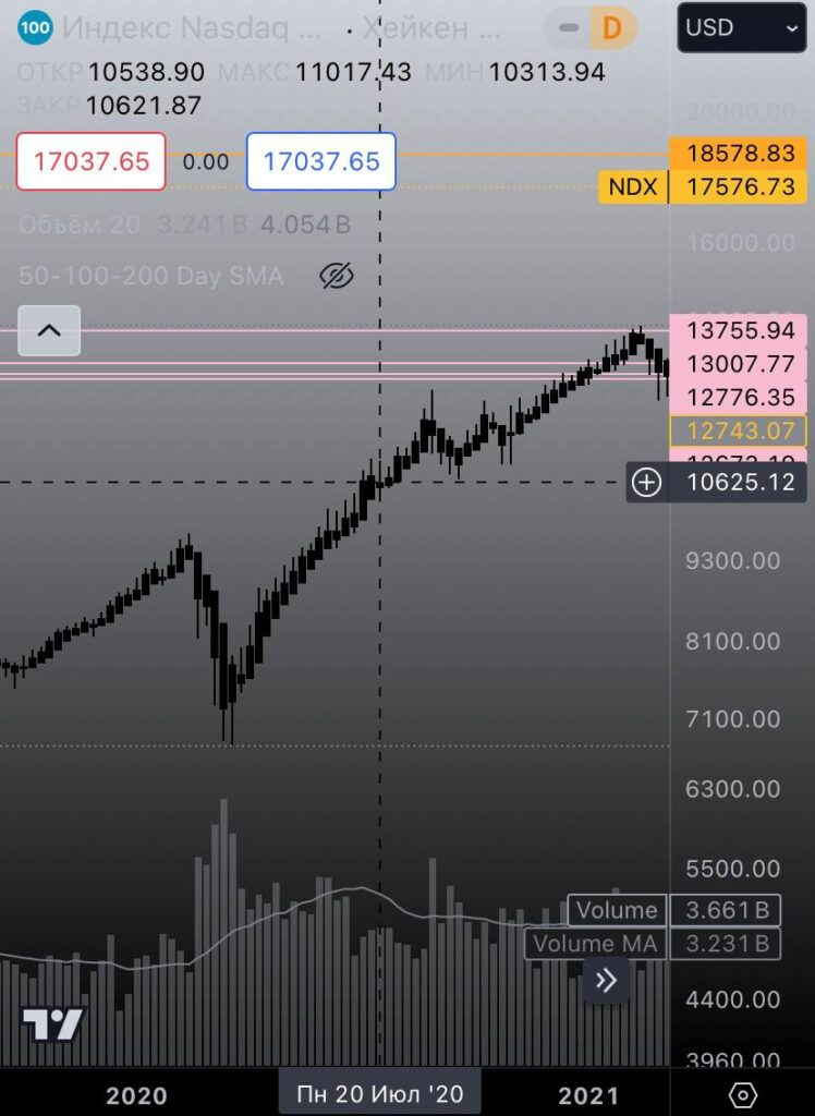 Июль 2020. Давным давно развернувшийся Насдак100 и отстающий от него всякий мусор, в данном случае GameStop. С биткоином и альткоинами аналогичный сценарий. Общие рекомендации по работе с короткими позициями остаются прежними. Шорт — это сложный и рискованный инструмент, требующий железной дисциплины. Не используйте шорты в торговле. Совсем. Деньгам свойственна девальвация, а значит, активам в долгосрочной перспективе свойственно расти. Работайте от лонга — это фундаментальное правило.