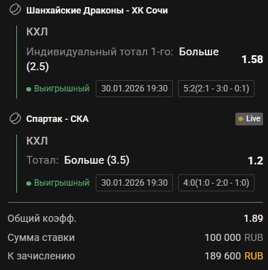 ➕➕➕Как и писал в рассылке, в КХЛ сегодня был уверен как никогда и настоятельно рекомендовал не пропускать. Те, кто доверился — мои поздравления с победой! ✅🔥
