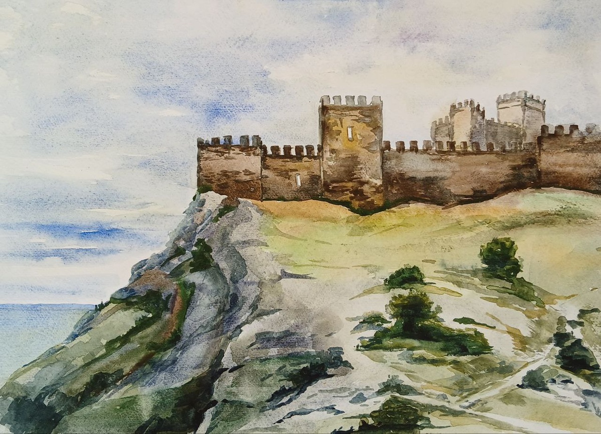 Следующая прогулка в Генуэзскую крепость. Сейчас это музей. Вход на территорию платный. результатом прогулки стал этюд.