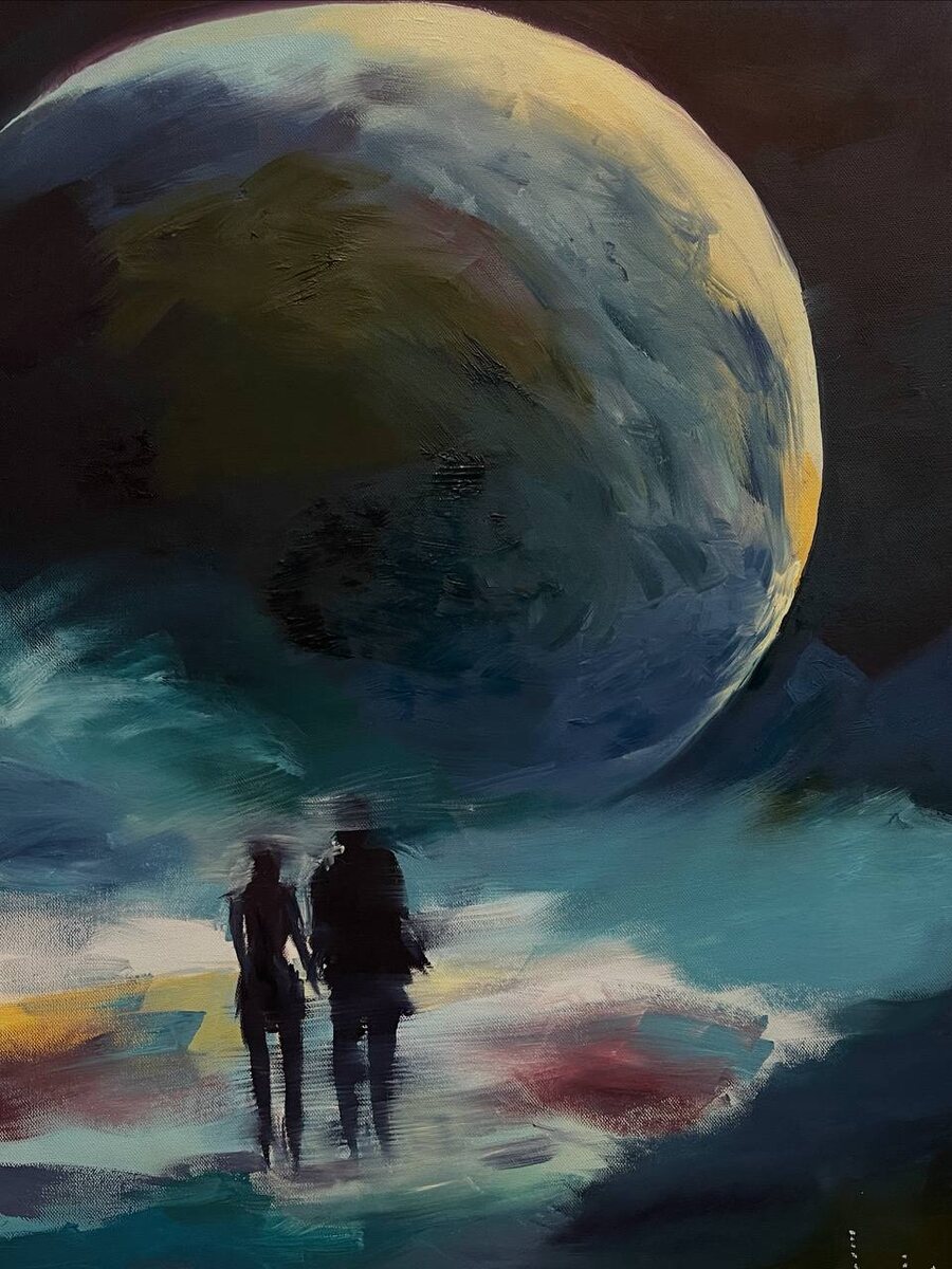 На фото - картина моей сестры Алёны ⠀ * * * «Давай сойдем с тобой с ума! Безумная идея! И ты рискни, влюбись сама, О прошлом не жалея! Безумцам все разрешено, Никто нас не осудит! И счастье, к нам обращено, Навеки нашим будет! Слепого счастья пелена В обиду нас не даст! Дыханием любви пьяна От всех укроет страсть! И будет мир у наших ног! И все нам по плечу! Переплетением дорог Я скуку излечу! И страстный блеск любимых глаз Пусть нежностью искрит! И смелость неприличных фраз Пусть в нас заговорит!» ⠀ Веселый взгляд вмиг потемнел: «Да ты и так безумен!» Счастливый пыл похолодел, Остыл на дне раздумий ⠀ «Как смел такое предложить? Ведь нас с тобой поймают! Ведь чтоб надежно сторожить, Таких на цепь сажают! Что делать мне, скажи, тогда? Смеяться? Веселиться? Как угораздила беда В безумного влюбиться? Когда обязанность придет За все ответ держать, Как мне поможет идиот Расплаты избежать? Петь песни будешь, хохотать? Плясать, орать, беситься? Минуту счастья вспоминать, Когда посмел влюбитьс