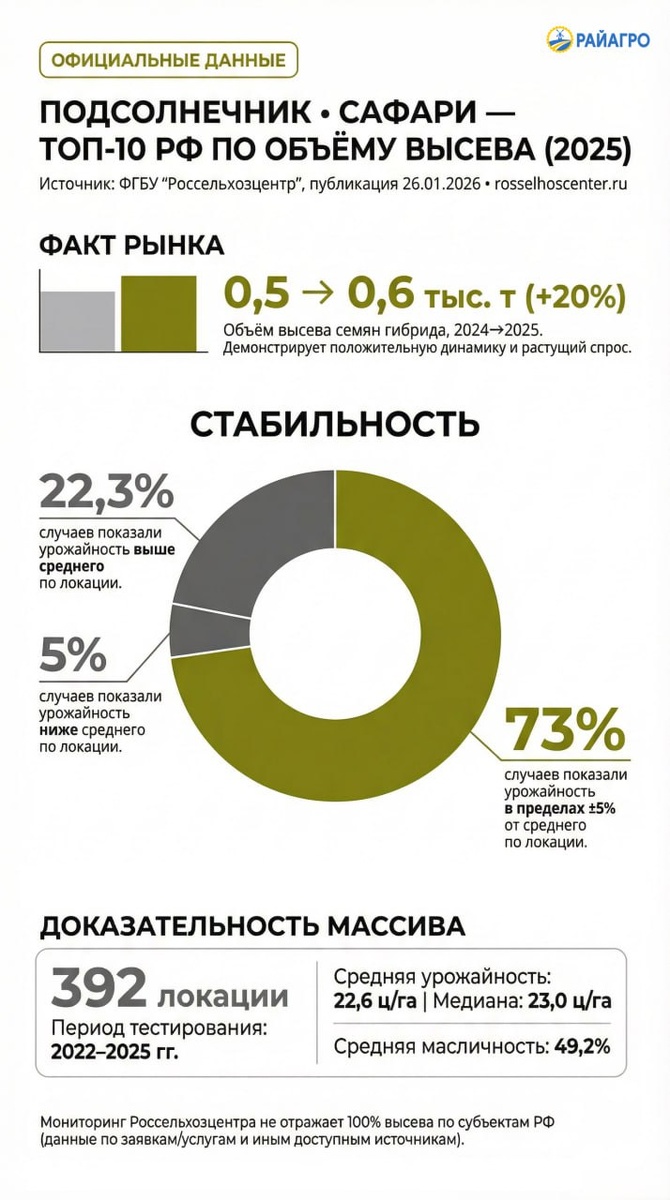 🌻 САФАРИ — в ТОП-10 РФ по объёму высева подсолнечника в 2025 (официально