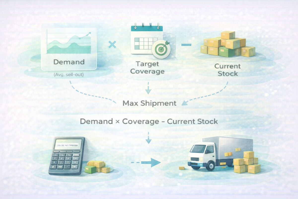 Классическая причина: вы управляете только sell-in (отгрузкой), но не привязываете его к sell-out (вторичным продажам) и остаткам. Если упростить: отгрузка должна догонять спрос, а не заменять его. 2) “Потолок отгрузки”: простая формула, которую можно внедрить быстро Для каждого SKU (или хотя бы топ-20) на период планирования (неделя/2 недели) задайте: Дальше правило “потолка”: Мак