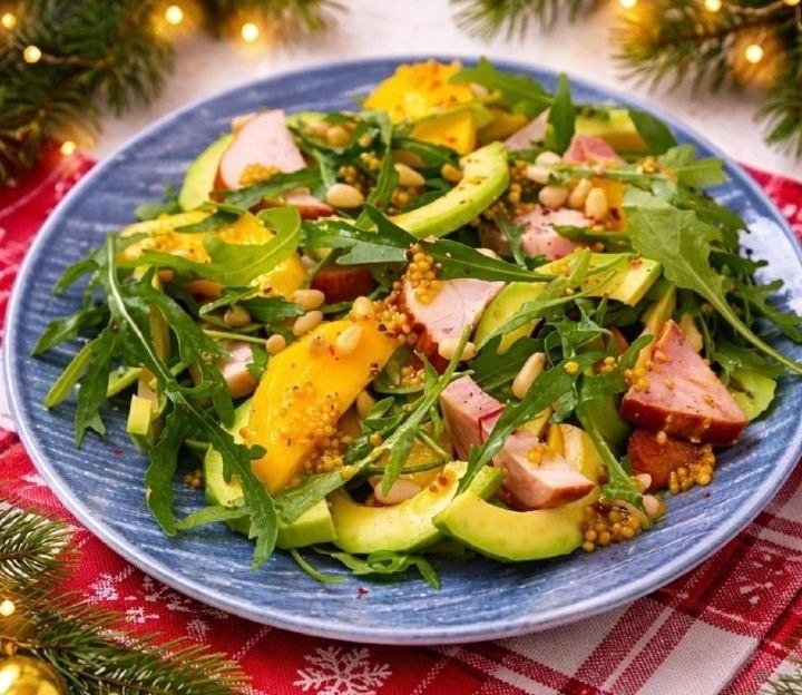 ИНГРЕДИЕНТЫ: ✅ Копчёная курица (бёдра или филе, без кожи) — 300 г ✅ Руккола — 100 г ✅ Манго спелое — 1–2 шт. ✅ Авокадо спелое — 1–2 шт. ✅ Лимонный сок — 1 ст. л. ✅ Кедровые орешки — 2 ст. л. ДЛЯ ЗАПРАВКИ: ✅ Апельсиновый или лимонный сок — 1–2 ст. л. ✅ Оливковое масло — 2 ст. л. ✅ Масло авокадо (или оливковое) — 2 ст. л. ✅ Горчица цельнозерновая — 1 ст. л. ✅ Морская соль — по вкусу ✅ Чёрный перец — по вкусу ПРИГОТОВЛЕНИЕ:1. Манго очистить, удалить косточку и нарезать мякоть ломтиками. 2. Авокадо очистить, удалить косточку, нарезать ломтиками и сбрызнуть лимонным соком. 3. Копчёную курицу нарезать ломтиками. 4. Рукколу промыть, обсушить и порвать руками. 5. Кедровые орешки обжарить на сухой сковороде до лёгкого золотистого цвета. 6. В миске соединить все ингредиенты для заправки, посолить, поперчить и хорошо перемешать. 7. В салатнице соединить рукколу, авокадо, манго и курицу, полить заправкой. 8. Посыпать салат кедровыми орешками и аккуратно перемешать. ПРИЯТНОГО АППЕТИТА!