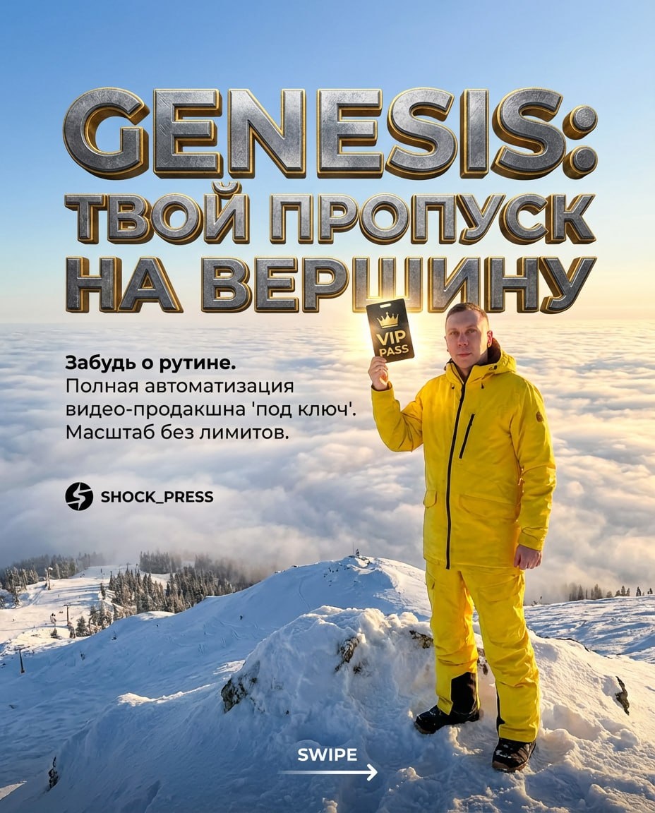 ? 🏔 Тариф GENESIS - это ваш личный вертолет на гору медийности. Забудьте о ручном монтаже и бесконечном поиске трендов. Система всё сделает за вас. 👇 Листайте карусель, чтобы узнать, что входит в максимальный пакет. #автоматизация #контентмаркетинг #нейросети #бизнес #GENESIS