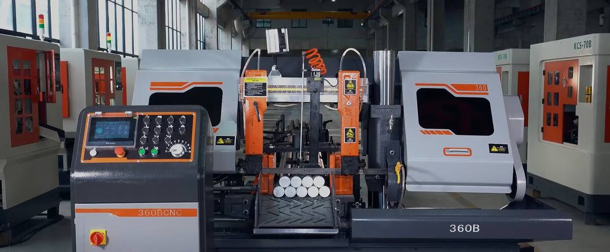 - Полуавтоматические станки, такие как KEENSAW G-series, управляют подачей рамы с помощью гидравлики, но зажим заготовки и другие операции выполняются вручную.