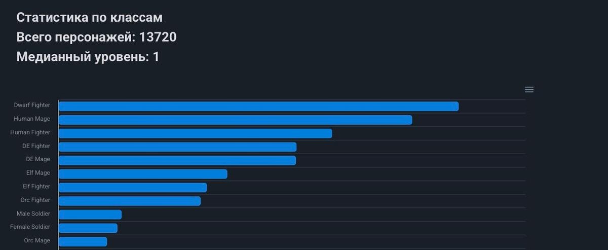 ? До запуска Скрайд Х осталось чуть больше 2 часов, а персонажей создано уже 13,720. Из них: Dwarf fighter (18.75%): 2572 шт. Human Mage (16.57%): 2273 шт. Human Fighter (12.81%): 1758 шт. DE Fighter (11.15%): 1530 шт. DE Mage (11.12%): 1526 шт. Elf Mage (7.91%): 1085 шт. Elf Fighter (6.95%): 954 шт. Orc fighter (6.66%): 914 шт. Kamael Male Soldier (2.96%): 406 шт. Kamael Female Soldier (2.76%): 379 шт. Orc Mage (2.27%): 312 шт. В честь такого ажиотажа рекомендуем подписаться на наш канал в ВК. Завтра закинем туда небольшой подарок для всех серверов. 📱 Подписаться на ВК 💙 Скрайд Х – Старт 30 Января 2026 ├ Описание нового сервера ├ Получить доступ к Новому Клиенту └ Заказать Наборы с Золотом 🔥 Создать аккаунт на Скрайд 🇩🇯 Скачать игру ⚡️ Как создать Скрайд ID