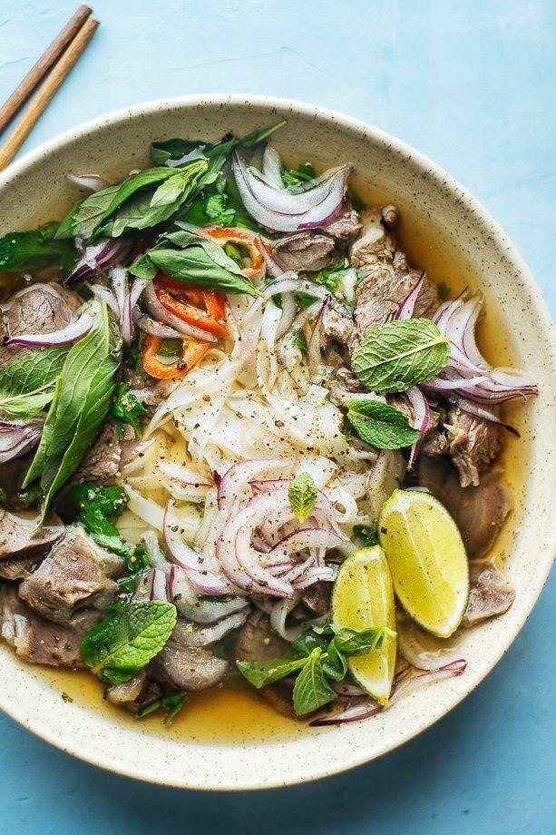Вьетнамский суп, который лечит всё: похмелье, простуду, разбитое сердце и экзистенциальный кризис. Прозрачный бульон (варится 12-24 часа из говяжьих костей), рисовая лапша, тонкие ломтики говядины, лук, кинза, базилик. Подают с лаймом, чили, ростками бобов - добавляешь сам. Произношение: "фа" (не "фо"!) Цена: 30,000-50,000 донг ($1.2-2) за тарелку размером с твою голову Phở bò (с говядиной) - классика