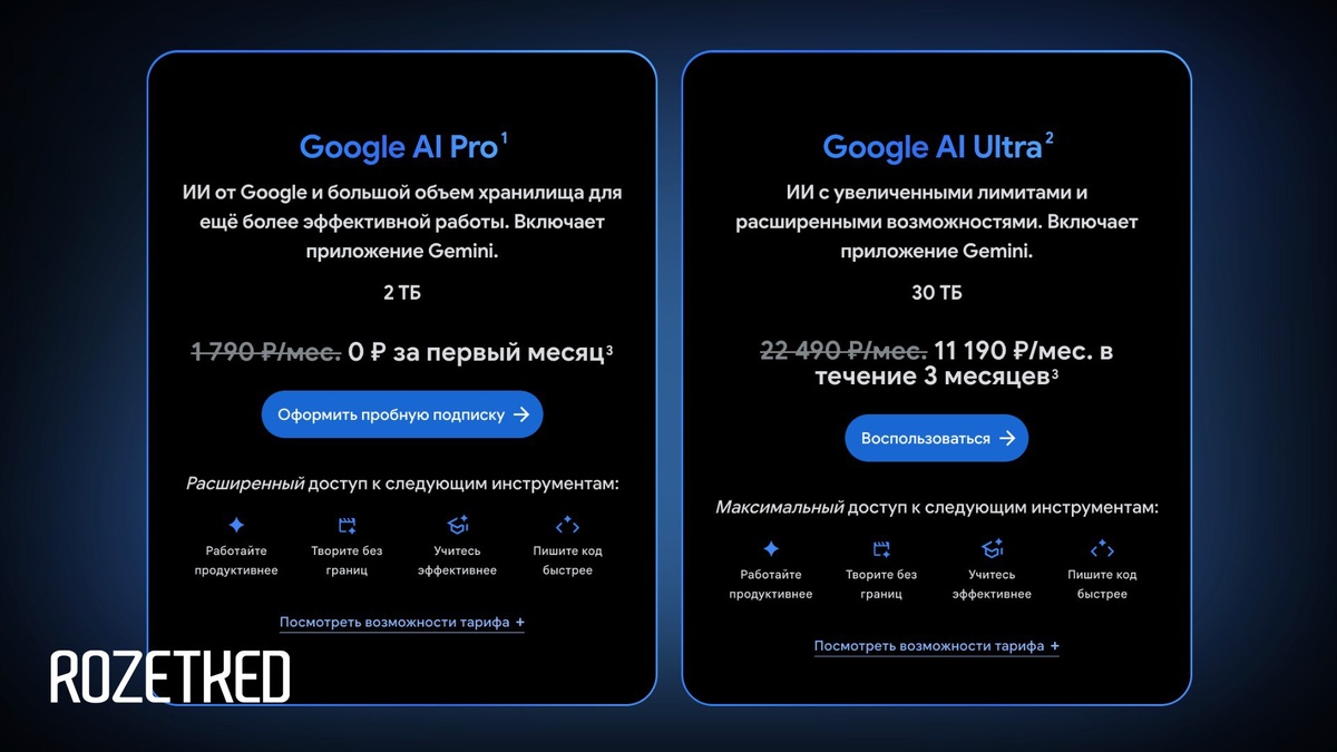 Внезапно: цены на платные подписки Google AI Pro и AI Ultra начали отображаться в рублях