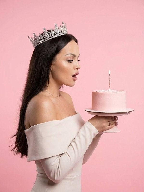 ! Торт, корона и белое платье. 🎂 Модель: Banana 😎 Промт: Используй референс лица как источник внешности. Максимально сохранить узнаваемость: форма глаз, носа и губ, цвет кожи, брови, прическа и цвет волос. Фотореалистичная студийная съемка. Сцена: розовая студия, мягкий ровный фон без текстур. Девушка в кадре по пояс, профиль слева направо. На голове изящная серебристая корона. В руках она держит небольшой нежно-розовый праздничный торт на подставке, на торте одна тонкая свеча с маленьким огоньком. Рот слегка приоткрыт в удивлении, взгляд на торт. Тонкая улыбка, мягкий гламурный макияж, аккуратные стрелки, ухоженные волосы. Одежда: элегантное светлое вечернее платье или топ с открытыми плечами. Кожа выглядит естественно, без чрезмерного блеска. Свет: мягкий студийный, крупный софтбокс спереди и легкий контровой свет, нежные тени, чистая картинка. Реализм, высокая детализация, без текста и логотипов. Формат 3:4. 💬 Создаем в боте: https://t.me/gptcyber_bot 💬 Чат подписчиков для во
