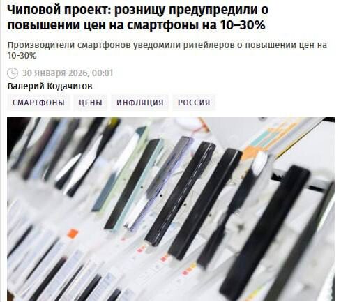 Производители уже предупредили ритейлеров о росте цен, а устройства по новым прайсам появятся в магазинах в марте–апреле. Причину участники рынка видят в дефиците чипов памяти — их массово скупают под ИИ-сервисы, из-за чего выпуск компонентов для обычной электроники сокращается. 👉🏻Новости №1 в Ростове 💌Прислать новость/фото Ростов Папа теперь в Ⓜ️🅰️❌