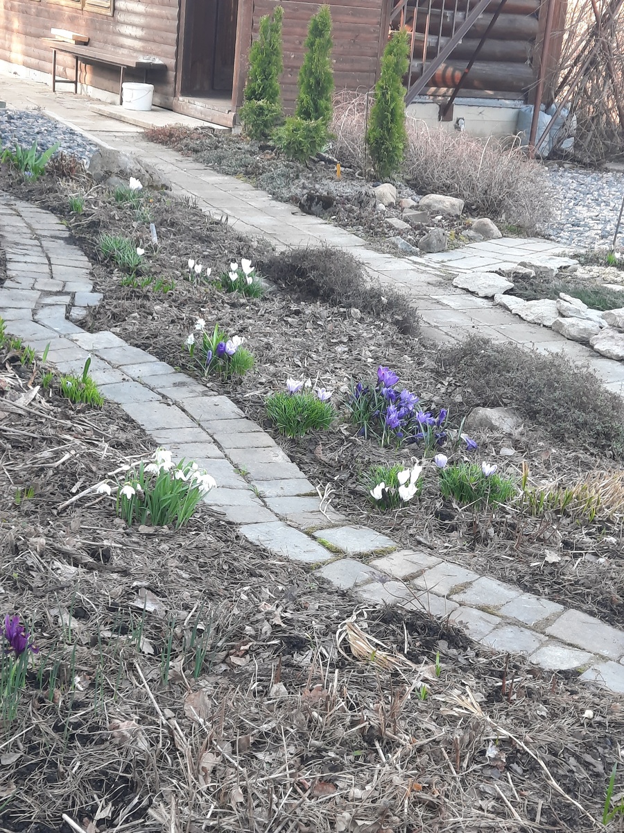 Март решила не показывать. Никаких интересностей не заметила. А в апреле зацвели нарциссы Тет а тет. Уже зелень других первоцветов просматривается.