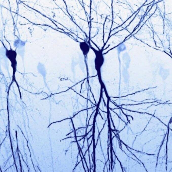 Снимок, удостоенный упоминания жюри в конкурсе Olympus BioScapes показывает «парящие» нейроны в области CA1 гиппокампа мыши на седьмом дне
