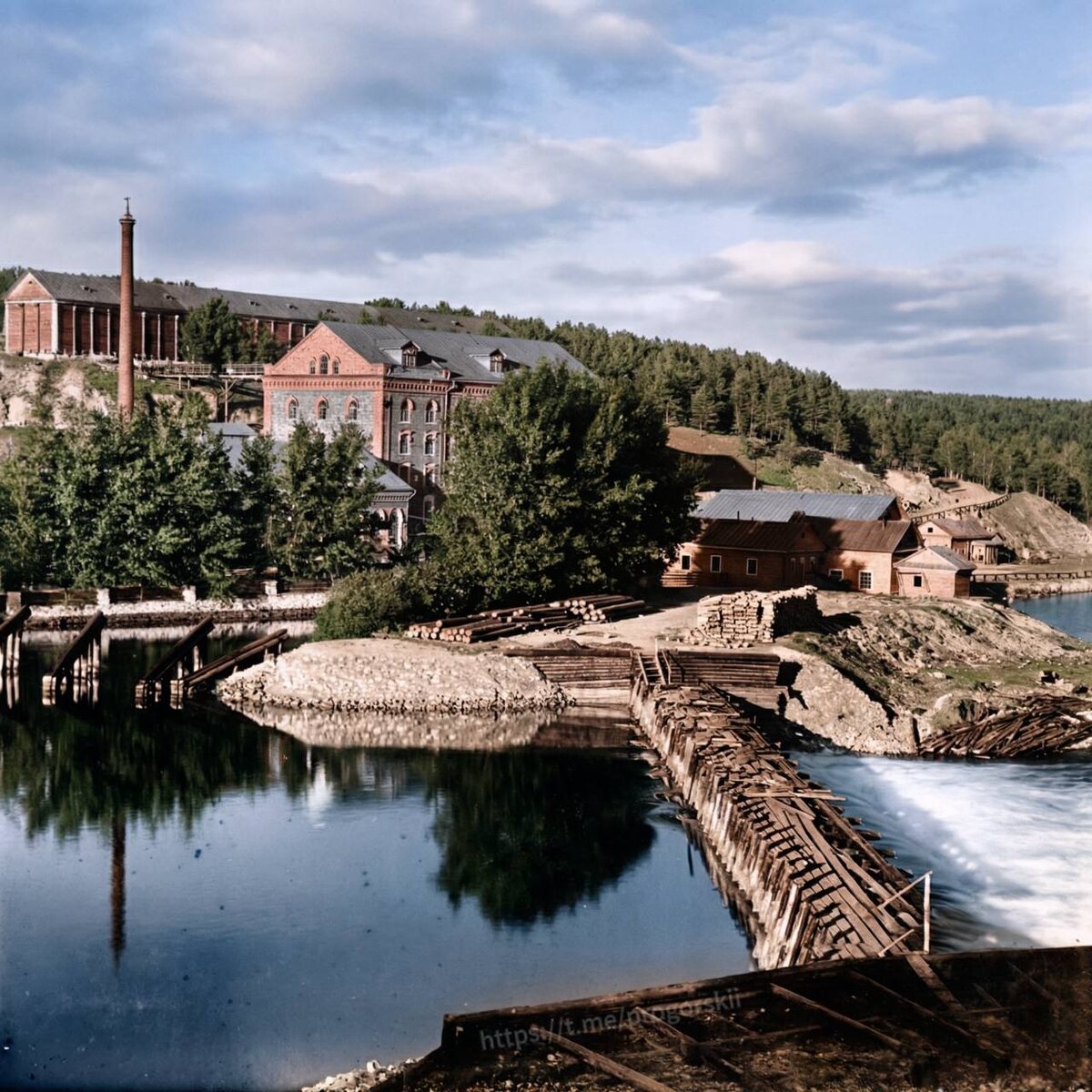 М. Прокудин-Горский. Соснинская мельница с плотиной. Река Исеть. 1909 год #ФотореставрацияПГ Ещё больше фотографий: ____________ Telegram | ВК | MAX | Дзен | Пикабу