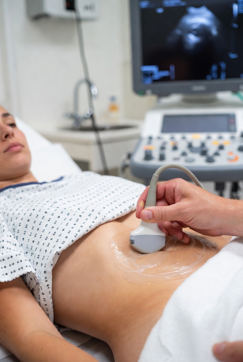 Возьмите направление, паспорт, полис, предыдущие результаты УЗИ (если есть) и простыню. Процедура безболезненна и занимает 15-20 минут. Врач нанесет на кожу гель и будет перемещать датчик по животу, возможно, попросит задержать дыхание или повернуться на бок.