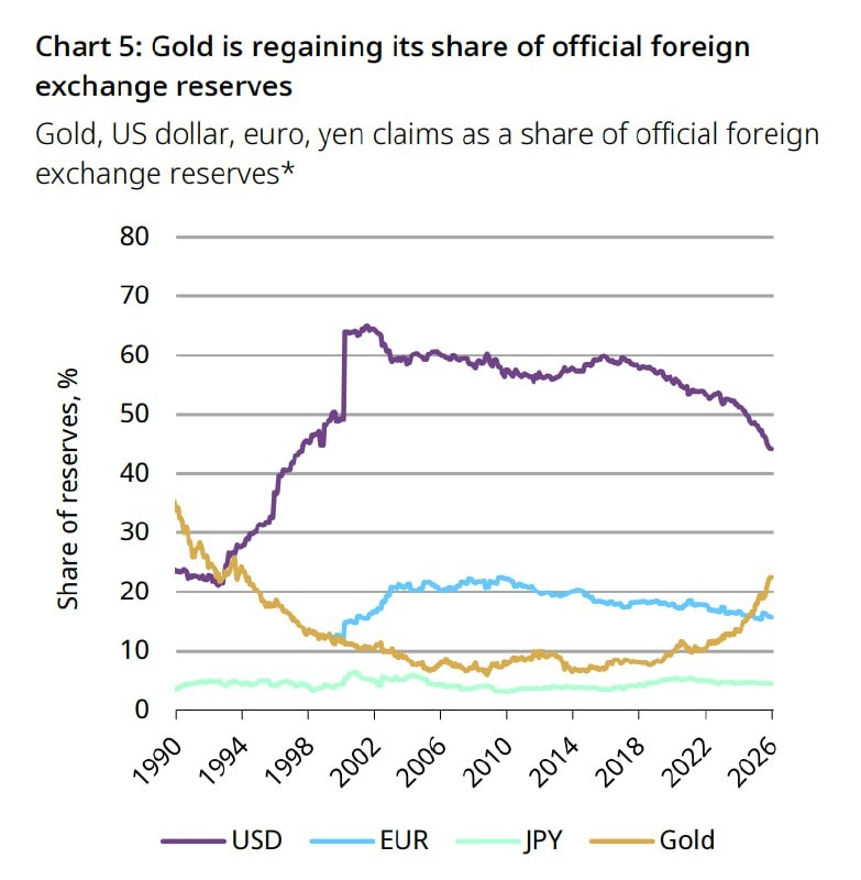 🏦 Рост доли золота происходит не за счёт вытеснения одной валюты, а за счёт общего пересмотра принципов резервного управления